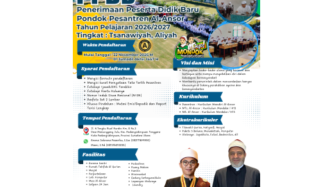 Calon santri yang ingin mendaftar bisa langsung datang ke Pesantren Al-Ansor setiap hari dengan Jam Kerja